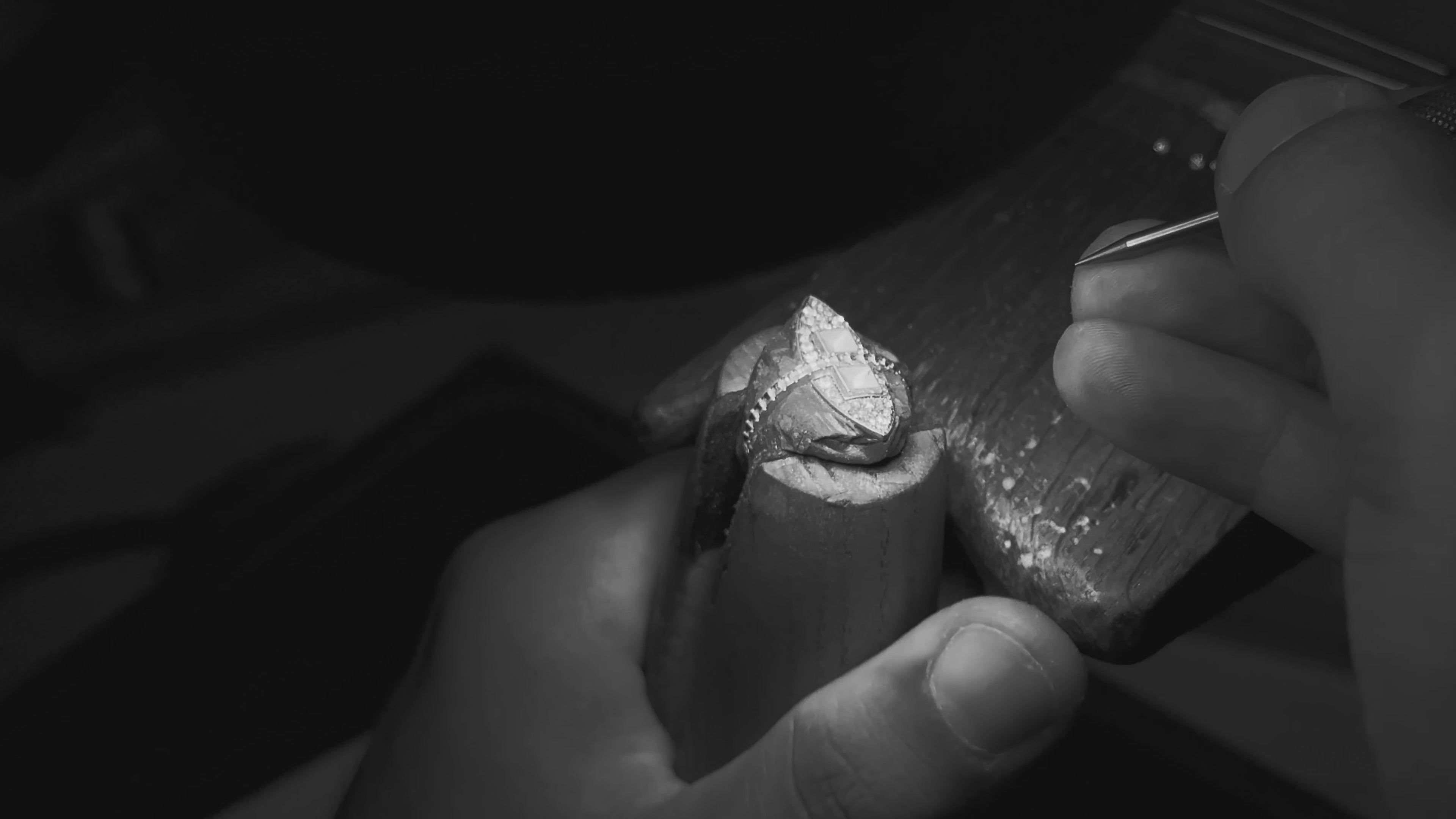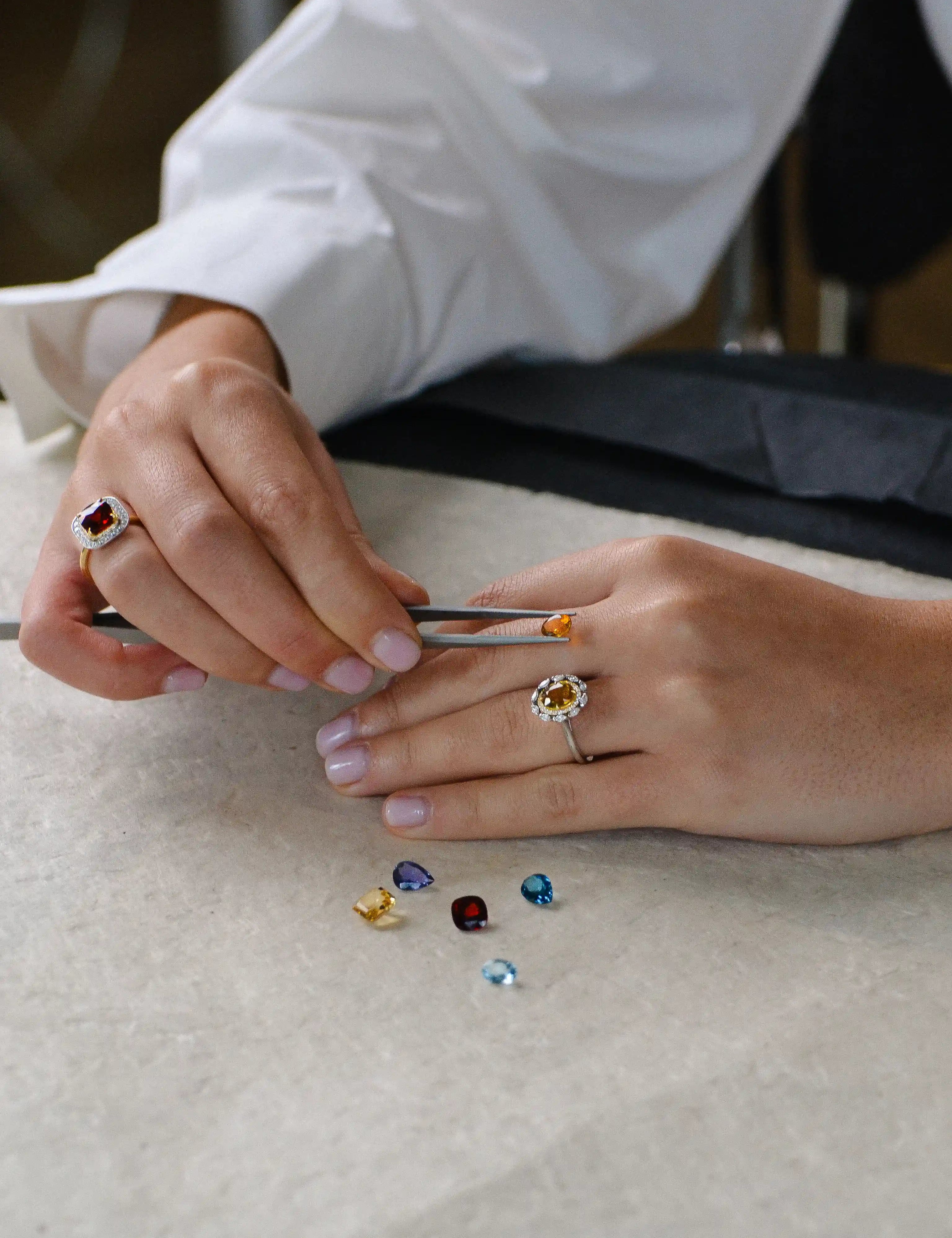 Les créations Maison PR prennent vie au sein d’un atelier français, où chaque bijou est façonné à la main avec exigence et précision. Dans ce lieu de création, artisans joailliers et sertisseurs perpétuent un savoir-faire transmis avec rigueur et sens du détail.